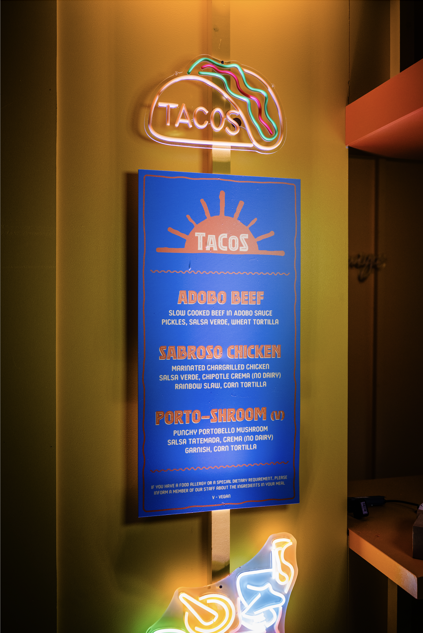 I created a bold, vibrant visual identity — from the logo and colour palette to custom-branded installations, menus and more. Every design detail was thoughtfully crafted to elevate the immersive guest experience.